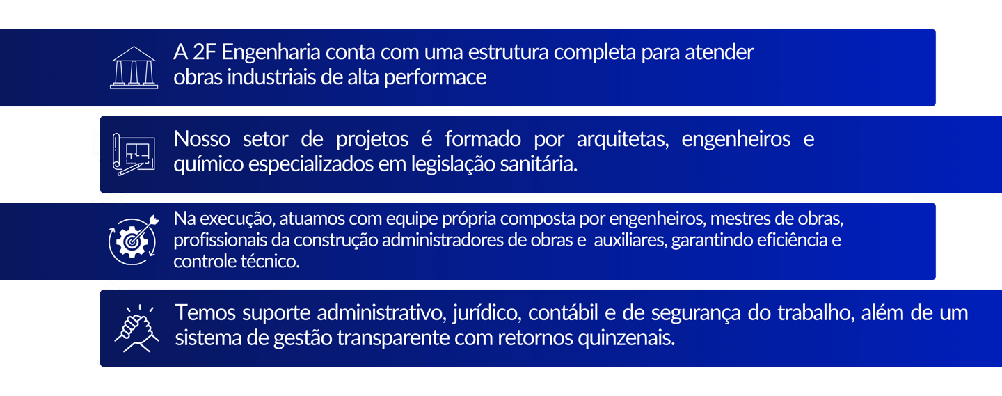 A 2F Engenharia é uma empresa experiente e especializada em Vigilância Sanitária, oferecendo soluções técnicas e regulatórias que garantem segurança, conformidade e eficiência para empreendimentos de diversas áreas. Atuando com comprometimento e excelência, a 2F contribui diretamente para o crescimento econômico de seus clientes, auxiliando na adequação às exigências legais e na otimização de processos, promovendo competitividade e fortalecendo sua atuação no mercado.